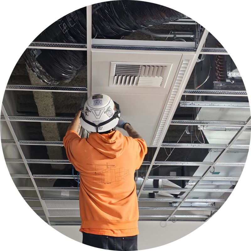 Experience the ease of installing your entire ceiling infrastructure in an easy-to-install appliance and raceway system. Decongest your jobsite with less demand for manpower and equipment.